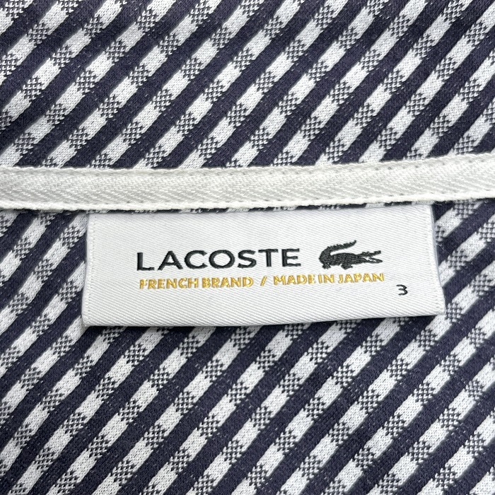 | 商品タイトル | ラコステ LACOSTE シャツ チェック ポケットにワニに刺繍 半袖 若干ストレッチ 日本製 綿×ポリ 3 ネイビー 紺×白 レディース(メンズ?) |