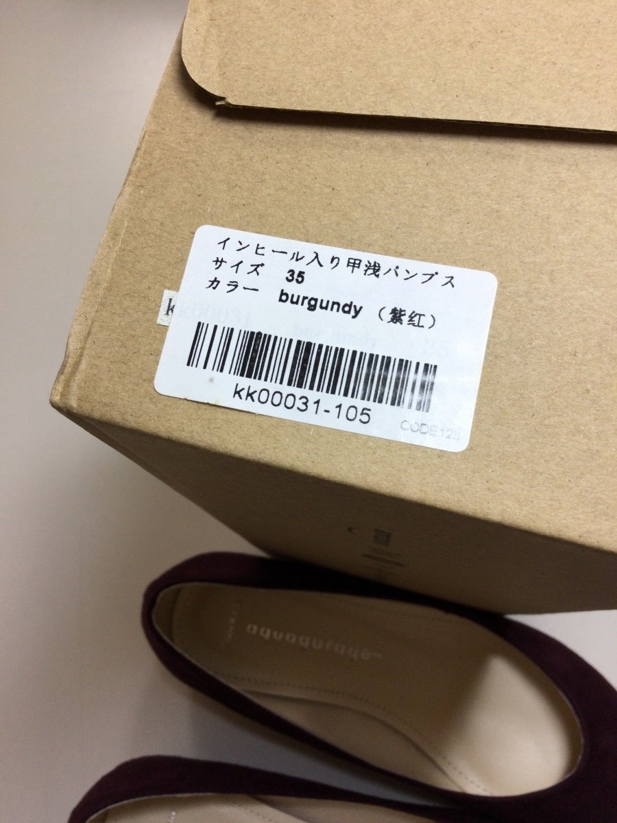| 管理番号:99^135707 aquagarage 未使用!インヒール入り甲浅パンプス 色はバーガンディ 表示サイズ:35 実寸(参考)