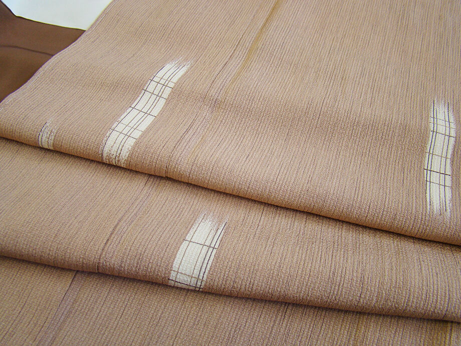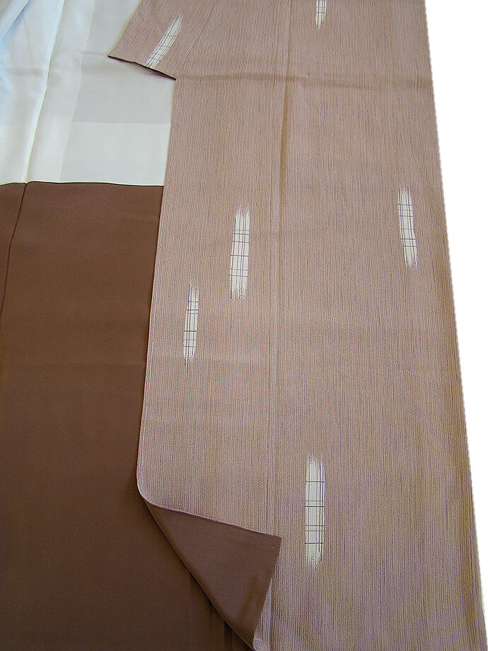 | 商品説明 | こちらのお品は「袷」ですので10月から5月までお召頂ければと思います。 しなやかで滑らかな手触りの着心地良い重めのちりめん地の変り織の生地、 ときがら茶色地に象牙色に茶色の格子柄の飛び柄の染柄、 八掛はコーヒー色(正絹)、幅広い年代の方にお召頂けます。 |