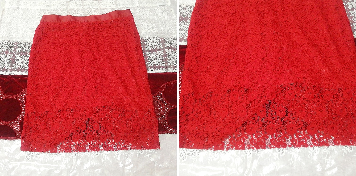 フィリピン製赤花柄レースミディアムスカート Philippine red floral lace midi skirt