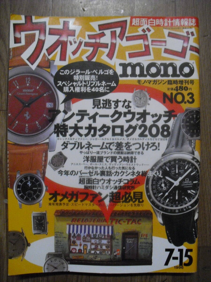 | 雑誌 ウォッチアゴーゴー モノマガジン臨時増刊 1996年7月 3号 腕時計 株式会社ワールドフォトプレス | |