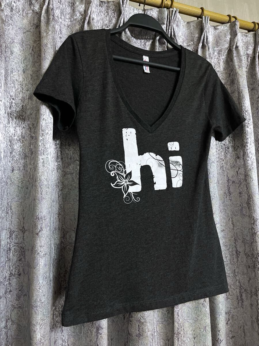 オシャレなグレーにハワイっぽい柄、バックにもあり。プリント割れあり、ご了承された方のみ ご購入下さいますよう どうぞよろしくお願いいたします。