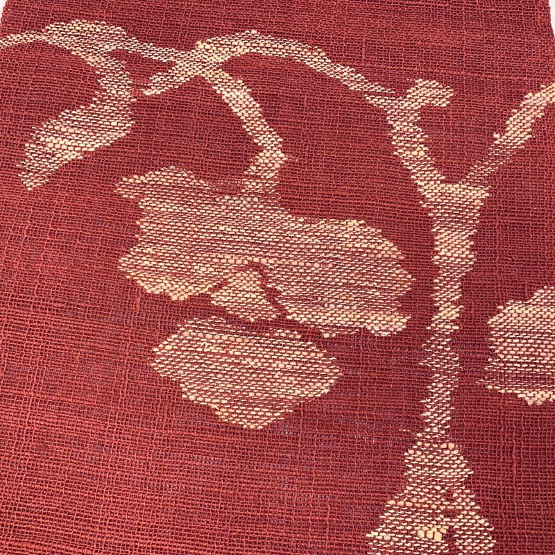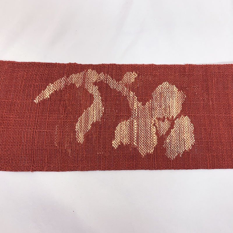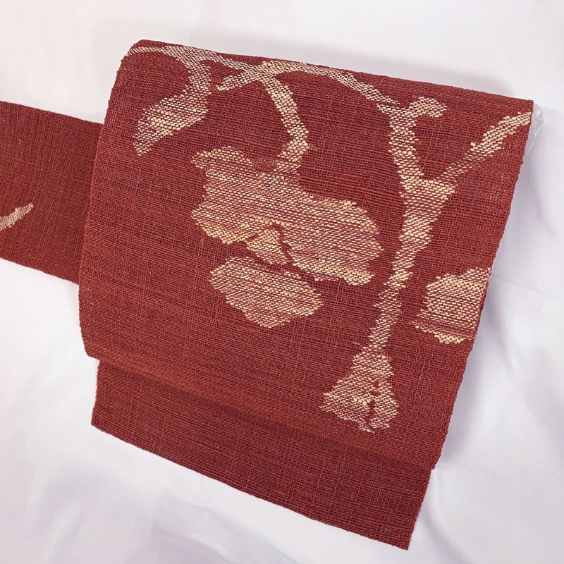 | ◇夏帯 羅 椿 花文様 八寸名古屋帯◇美品 (No.n) ツバキにような花文様が織り出された羅の八寸名古屋帯です。糸の幅の変化や節の風合いが感じられます。 特に目立つようなシミ・ダメージもなく美品です。 【素材】正絹 【色】唐紅花・緋色系 *モニターによって色味は実際と異なる場合がございます。 【サイズ】幅:30cm、長さ:361cm *素人採寸のため、多少の誤差はご容赦ください。 上質な逸品ですので、いかがでしょうか?よいお品物でお勧めです^^ | |