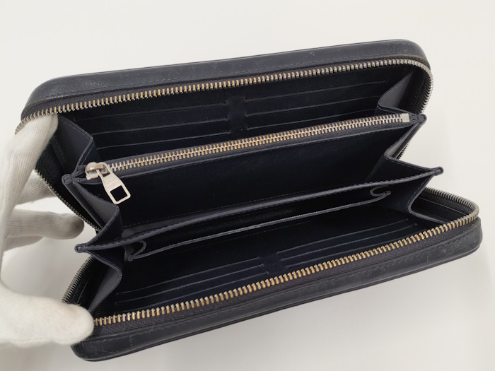 | ◆商品情報 | ・カラー:ネイビー ・素材/ライン:画像の通り ・サイズ:最大約 W22×H13(cm) ・札入れ×3 ・ポケット×3 ・カード入れ×16 ・小銭入れ×1 ・製造番号:CA3187 |