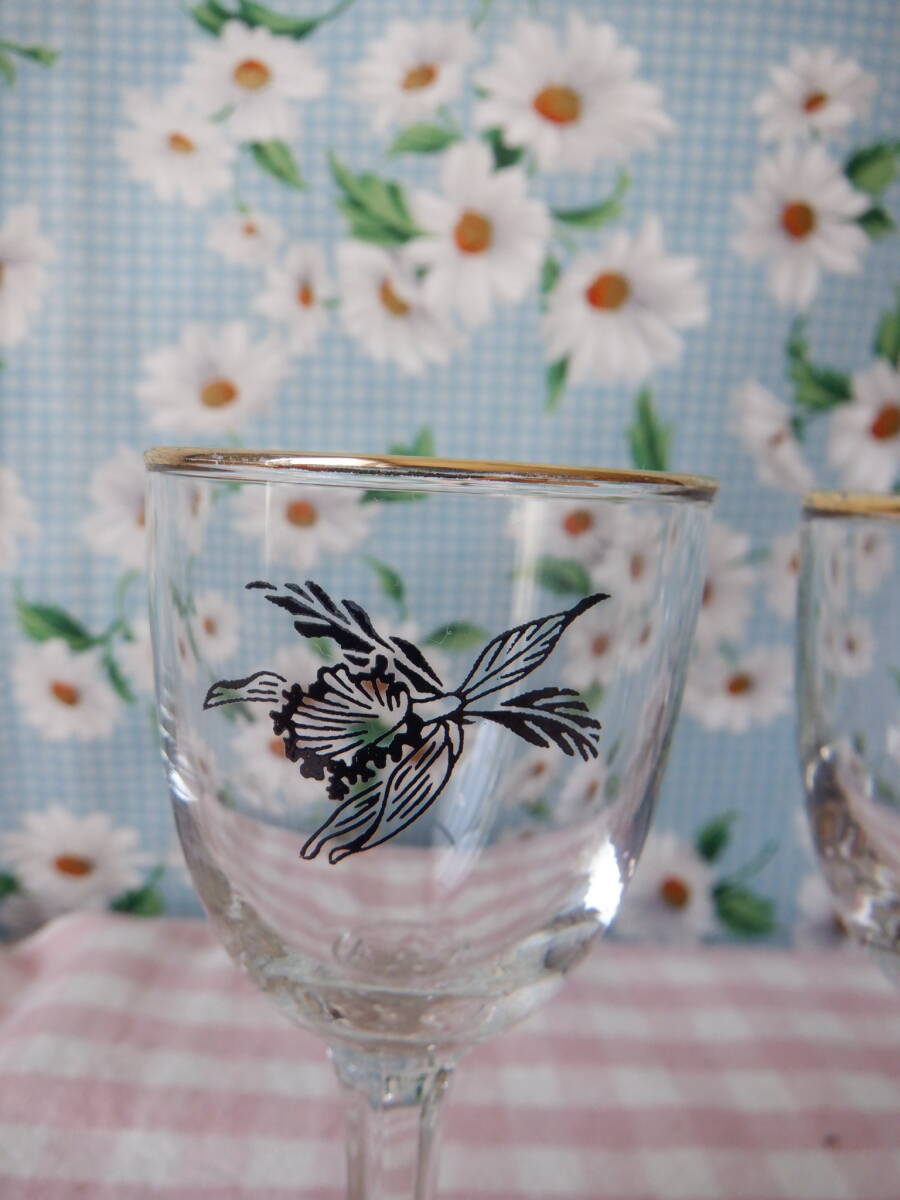 昭和レトロ『金彩 花柄模様のミニワイングラス 食前酒グラス~5個まとめて』~箱なし 洋食器になります。グラスのサイズが、口径4.5cm、高さ10.3cmになります。採寸の方ですが、多少の誤差はお許し下さい。実家の片付けで出てきましたので、詳しいことはわかりかねますのでその点にご理解いただける方のみ入札をお願いいたします。自宅にて長期保管につき、ノークレームノーリターンでお願いいたします。新規の方・評価の悪い方は、こちらの判断で取り消しさせていただく場合があります。