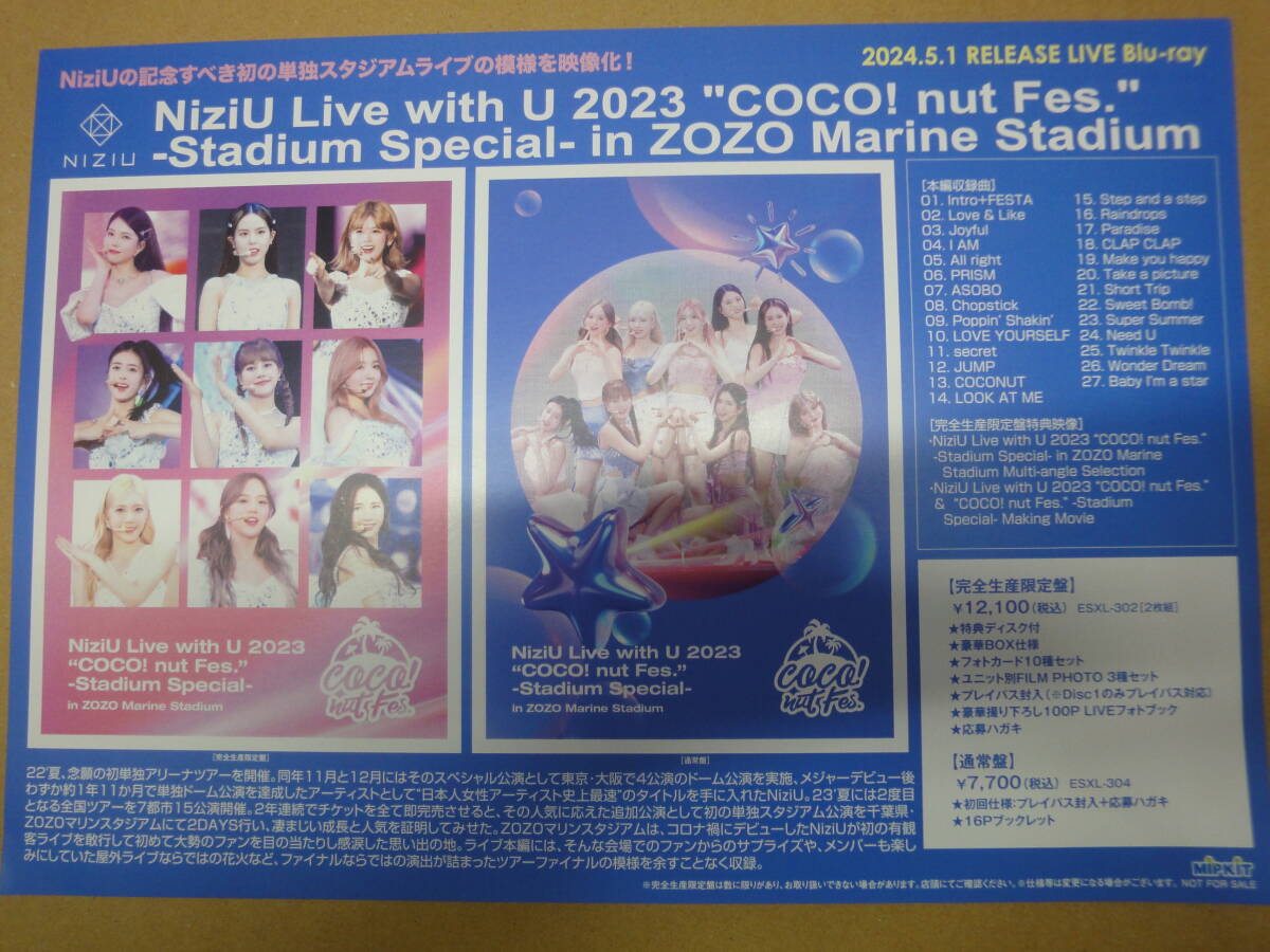 | 【販促用ポスター】 NiziU 「NiziU Live with U 2023"COCO!nut Fes."」 です。 サイズは約30cm×21cm です。 素人採寸のため、実際のサイズとの差異はご了承願います。 中古品・素人保管のため若干のキズや汚れがある場合があります。 また見落としのキズや汚れがある場合があります。 お気になさらない方のみご入札願います。 商品管理No:20250904 |