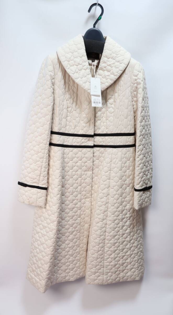 TOCCA (トッカ)LAURA NEW ショールカラーキルティングコート トッカらしく上品なキルティングコートです。 上品なキルティングにお袖のリボン、バイカラーのパイピングがとてもかわいい素敵なコートです。 メーカー商品詳細… TOCCAのアイコン、ラッキークローバーのキルトを施した大人気のキルティングコートに新デザインが登場しました。 TOCCAらしいショールカラーでカジュアルなイメージのキルティングをドレスライクに仕立てました。 スナップボタン使いですのでボタンの開け方次第でお好きなシルエットにお召しいただけます。 また、クローバーのキルティングは、トラッドに見えずエレガント感も出るよう、大きさや丸み、厚さなどにもこだわってオリジナルで作成しています。 ご質問はお気軽にどうぞ。 ◆カラー:ベージュ系[033] ◆サイズ 2 (Mサイズ相当。ブランドによりサイズ感が異なりますので、実寸を参考になさってください。) ◆実寸(約) 2:着丈101.0 身幅47.2 肩幅37.5 ウエスト85.0 そで丈60.4 袖(二の腕)幅18.0 重量(g)609 ◆素材:[表地]ポリエステル:100%[別布]ポリエステル:100%[中わた]ポリエステル:100%[裏地]ポリエステル ◆新品・未使用 ◆定価61,600円(本体56,000円+消費税) |