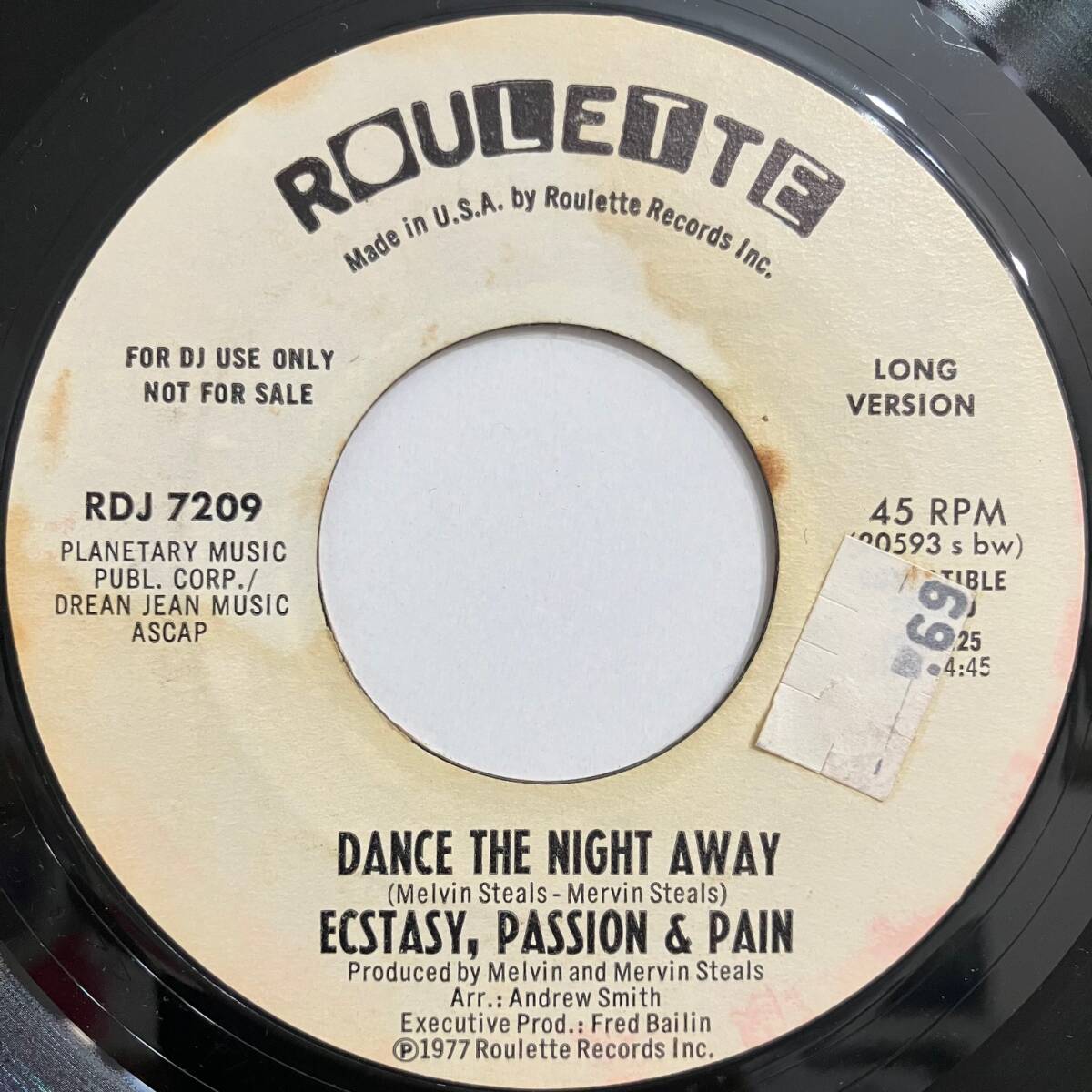 盤質・・・EX+ とても良好です。ラベル部分に多少シミあります。画像を参照ください。 *商品の状態にこだわりのある方は、必ずご質問いただいた上で入札お願いいたします。 他にも出品しておりますので、こちらからぜひご覧ください。 7” Ecstasy, Passion & Pain - Dance The Night Away ★ レコード オルガンバー サバービア フリーソウル muro funk45 レアグルーヴ122 | ||||