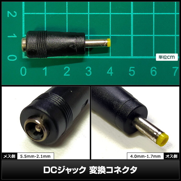 | DCジャック(メス側):外径5.5mm/内径2.1mm DCジャック(オス側):外径4.0mm/内径1.7mm | |