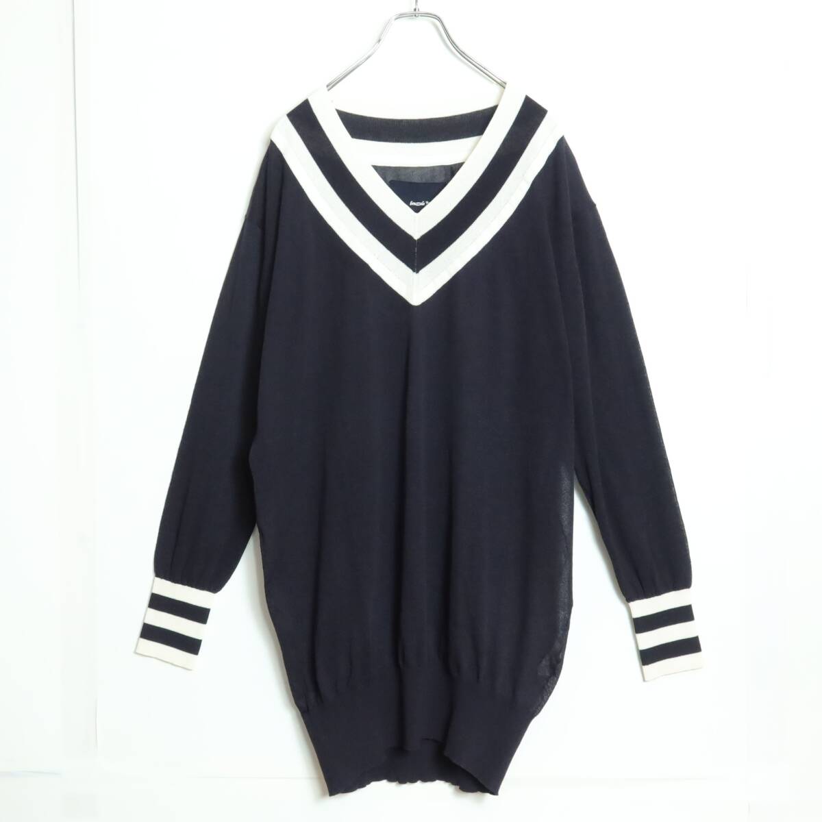 | 商品説明 | 【実寸約】裄丈95バスト126着丈89(cm) 【サイズ表記】 1 【素材】 綿90ポリエステル10% 【状態】 使用感少なめの美品 【デザイン】濃紺×白系 Vラインがおしゃれな長袖ニットチュニックです。 薄手/無地/シアー感あり |