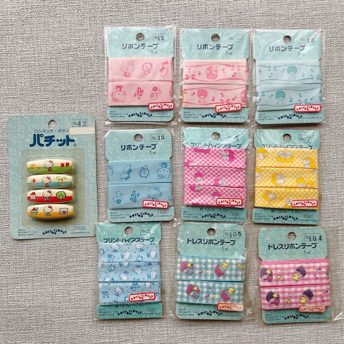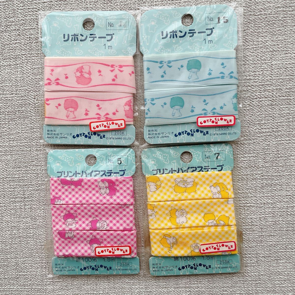 ハローキティ キキララ リトルツインスターズ サンリオ Sanrio リボンテープ バイアステープ パチット 1976年 当時物 新品未使用 レトロ 激レア