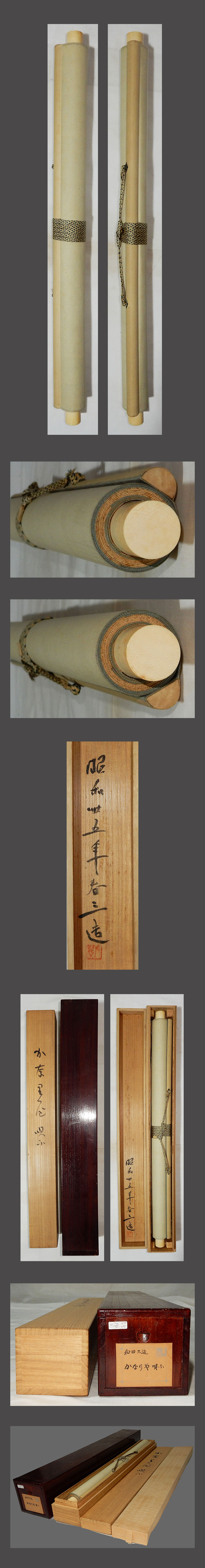 ・掛軸の軸先ですが、細心の注意を払って梱包しておりますが、 配送中の振動・気温・経年劣化等で外れてしまうことがあります。 軸先の外れは、破損ではございませんので、返品の対象にはなりません。 大変お手数ですが、お客様ご自身での修復をお願い致します。 ・添付写真の画像と説明文でご理解頂ける方、ご入札を宜しくお願い致します。 ・添付写真の画像は撮影の光度により、現物と若干の色合いの相違が生じる事があります。 ・添付写真の画像は受取完了のご連絡を頂いた後に速やかに消去しますのでご了承下さい。 ・土・日・祝日はお休みさせて頂きますので、商品発送は、月曜日以降になります。 ・祝日の場合は、翌日の平日以降の発送になります。 ・土・日・祝日は、メールの返信が若干遅れる事がございます。どうか、ご了承下さい。 ・時間的に余裕がない場合などでお答えが出来ない事も多々有ります。 ご不明な点は落札日前日までに早めにご質問下さい。 ・商品トラブルがあった場合は、直ちにご連絡下さい。 お取引に付きましては迅速・丁寧に対応させて頂きます。 ・落札後、できるだけ2日以内に連絡(返信)を頂ける方、 5日以内にご入金できる方の御入札を御願い致します。 ・新規の方や評価の総評が悪い方は当方の判断にて、入札取り消しを行う場合がございます。 ・お取引に付きましては、迅速、丁寧に対応致しますのでどうぞ、宜しくお願い致します。 ・古美術品や古物や古書画の出品が多いため、神経質な方がご入札される場合は、 ご自身が納得の行く価格でご入札ください。 ・万一、ヤフーのシステム障害により、公正なオークションができなかったまま終了し、 落札者様にご落札された場合は、当方より取引ナビで取引中止のご連絡を致します。 その時は、どうか、ご了承をお願い致します。 ・終了当日・直前の入札の取り消しは、 トラブルの原因となりますのでご遠慮お願い致します。 ・入札後の取り消し(キャンセル)は行っておりません。 ・落札後のキャンセル・返品はお断りしてます。 入札前によくご確認頂き、間違いのないようにご注意下さい。 |