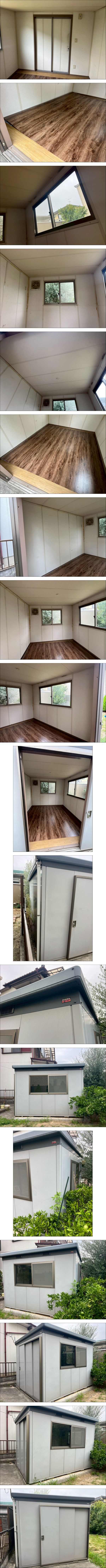 分解済み中古のプレハブとなります。さいたま市岩槻区で引取り限定です。 安心の断熱構造物置。趣味の道具や服などの収納場所として、安心の断熱・耐久効果で大切に守ります。 鍵あり。窓オプション2面付き。既存の床上に敷く床材が付属します。 電気配線は全て撤去しています。 幅246cm×奥行246cm×高さ227cm 【備考】 分解、運搬の際に傷、凹みが生じている場合があります。ご了承ください。 | |||