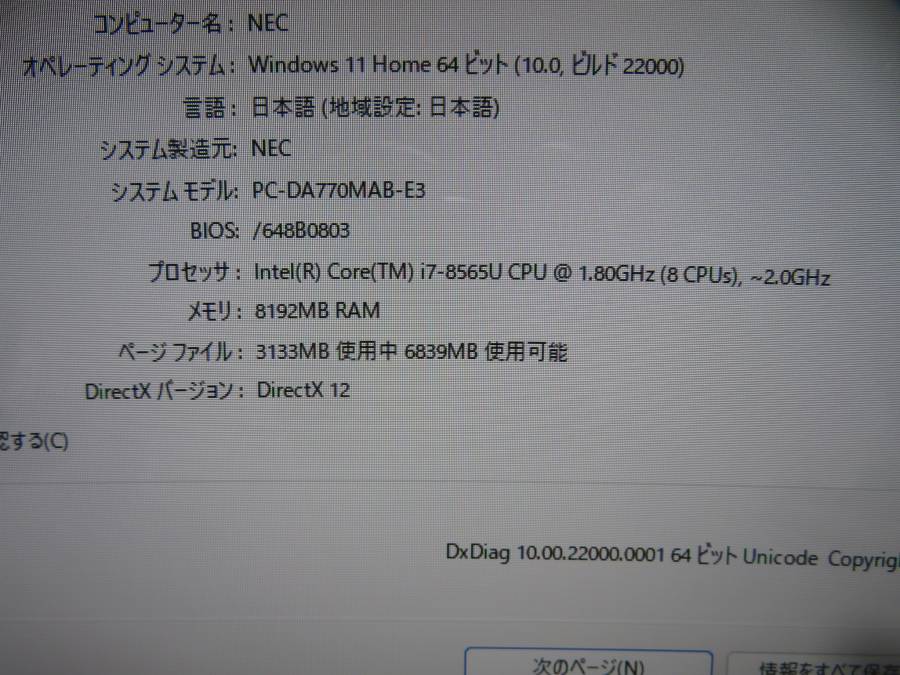 ◆ OS :最新 Windows 11Home 64bit ( Winデジタルライセンス認証済みにてすぐに使用が出来る状態となっています。)