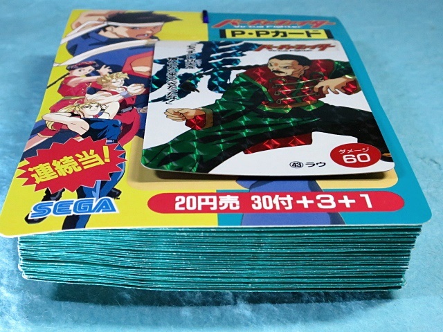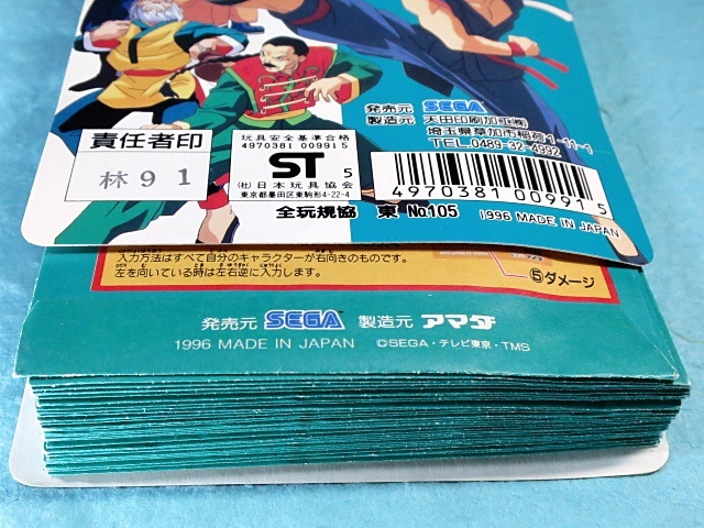 ・バーチャファイター PPカード 1束 ・1束34付(枚)入り+表紙1枚 ・1996年 アマダ 発売 ・中袋未開封 ・1袋1枚入り ・台紙によごれや輪ゴム跡有ります。 ・表紙のキラカードは上部がセロテープが貼られています。 |