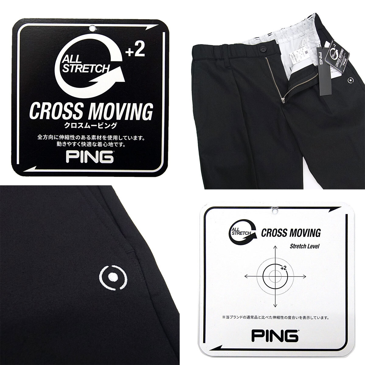 国内正規品。アメリカで1959年に創業した歴史ある総合ゴルフブランド【PING / ピン】。全方向にとても豊かに伸縮するハイストレッチ「CROSS MOVING」サラリとした肌触りのオールシーズン(通年生地)で季節をあまり気にせずご活用いただけます。腰回り・もも回りに少しゆとりをもたせ動きやすさを確保しつつ、裾に向かいスマートに仕上げたトレンド感あるテーパードシルエット。ウエストはゴム入りで腰にぴったりフィット。股下はアンクル丈。ゴルフラインの高機能パンツですが、ベーシックかつシンプルなデザインでカジュアルやビジネスカジュアル(クールビズパンツ)にもご活用いただけるのが、おすすめのポイント。ウォッシャブル ご家庭の洗濯機で洗濯ができます。定価は税込13,200円の品。こちらのサイズは【1品限り】。どうぞお見逃しなく。(並行輸入品ではなく、国内の大手スポーツショップやゴルフショップ、百貨店等で販売される国内正規品となります)