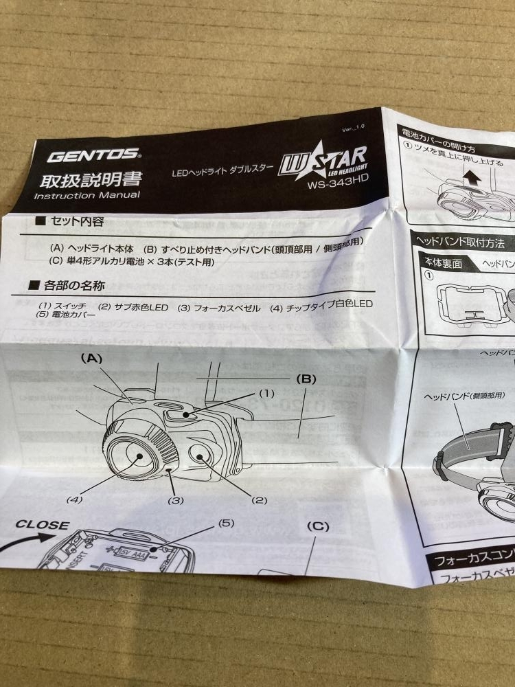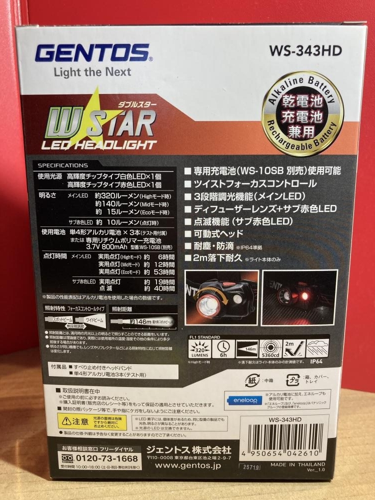 025♪未使用品・即決価格♪GENTOS ジェントス LEDヘッドライトダブルスター WS-343HD 長期保管付属乾電池期限切れ