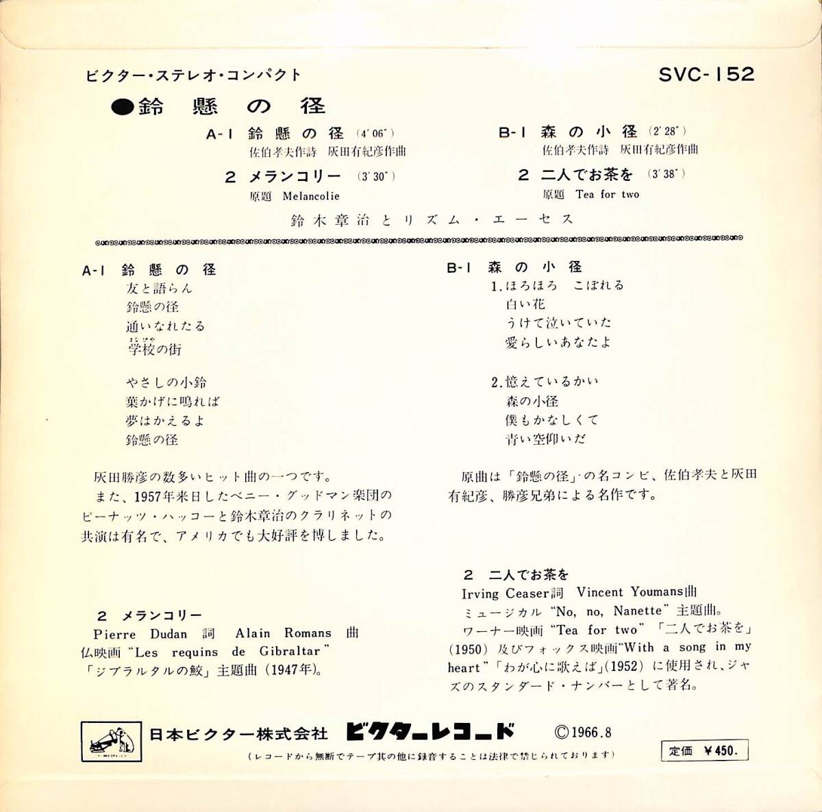 タイトル鈴懸の径 (1966年・SVC-152・4曲入・スムースJAZZ)