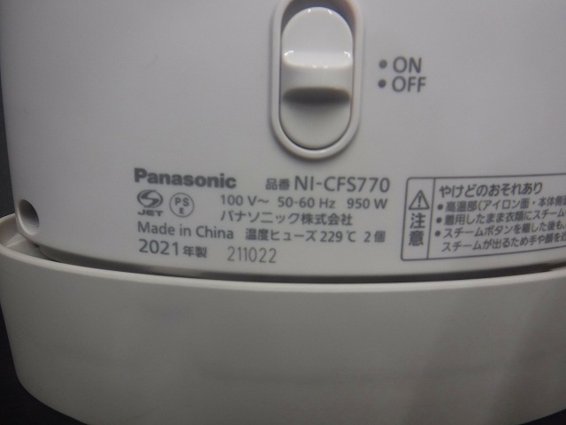 ----※必ず注意事項を最後までお読みいただき、ご納得の上 ご入札をご検討下さい。※--- ----※説明文および注意事項読み忘れ等のキャンセルは 一切お受けできませんのでご了承ください※---- ----※if you don't understand japanese, please don't bid.※---- ********************************************** 【メーカー】 Panasonic 【商品名】 衣類スチーマー アイロン NI-FS770-C 【スペック】 質量 本体/約705g(スタンド含まず)/約780g(スタンド:75g込み) 外形寸法 本体/約幅8×高さ13×長さ16.5cm スチーム穴の数 6穴 温度 高温:ドライ 約160℃/スチーム 約190℃ 中温:ドライ 約140℃/スチーム 約155℃ 低温:ドライ 約110℃ 立ち上がり時間 約19秒 2022年製 ◆===商品詳細HP====◆ 【詳細】 写真に写っているものが全てです。 専用箱・説明書等は有りません。 動作確認済み 通電、プレートの加熱、温度の調節、スチームの確認を行いました。 USED品の為、若干の小傷等有る場合もございます。 ※動作確認の都合上、本体内に水を入れています。 残った水は取り出していますが、若干残っている場合があります。あらかじめご了承ください。 状態に付いては写真にてご確認をお願い致します。 【発送】 【60サイズ】にて東京より発送予定となります。 1300 円 北海道 900 円 青森 岩手 秋田 880 円 宮城 山形 福島 東京 神奈川 千葉 埼玉 茨城 栃木 群馬 山梨 新潟 長野 愛知 静岡 三重 岐阜 富山 石川 福井 980 円 滋賀 京都 大阪 兵庫 奈良 和歌山 1130 円 鳥取 島根 岡山 広島 山口 1150 円 徳島 香川 愛媛 高知 1330 円 福岡 佐賀 長崎 大分 熊本 宮崎 鹿児島 ※当社指定の配送会社より発送いたします ※配送会社の指定はできませんのでご了承下さい。 ※離島への配送については、送料表の金額とは異なる場合がございます。 必ず事前にご相談ください。 ・【直接引渡し】可能です。(東京都武蔵村山市) | ||||