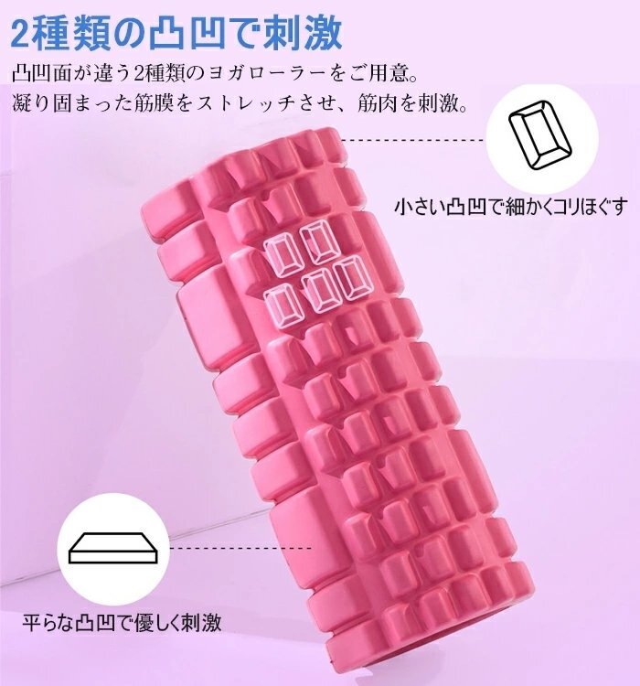 筋膜リリースローラー 筋膜ローラー トリガーポイントセット ホームローラー マッサージボール 超軽量 3点セット 33cm☆ピンク