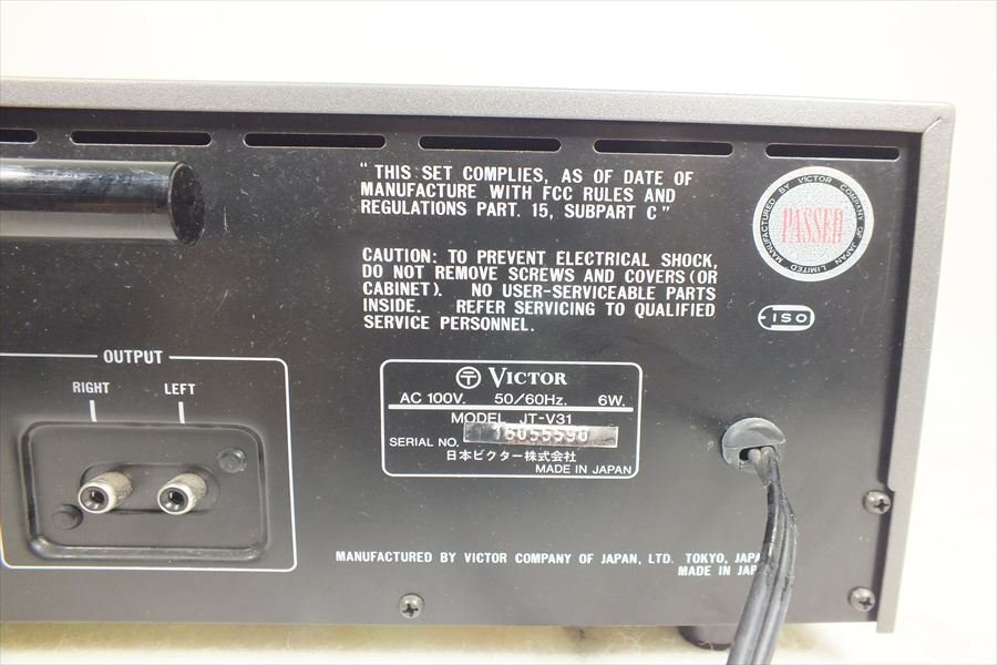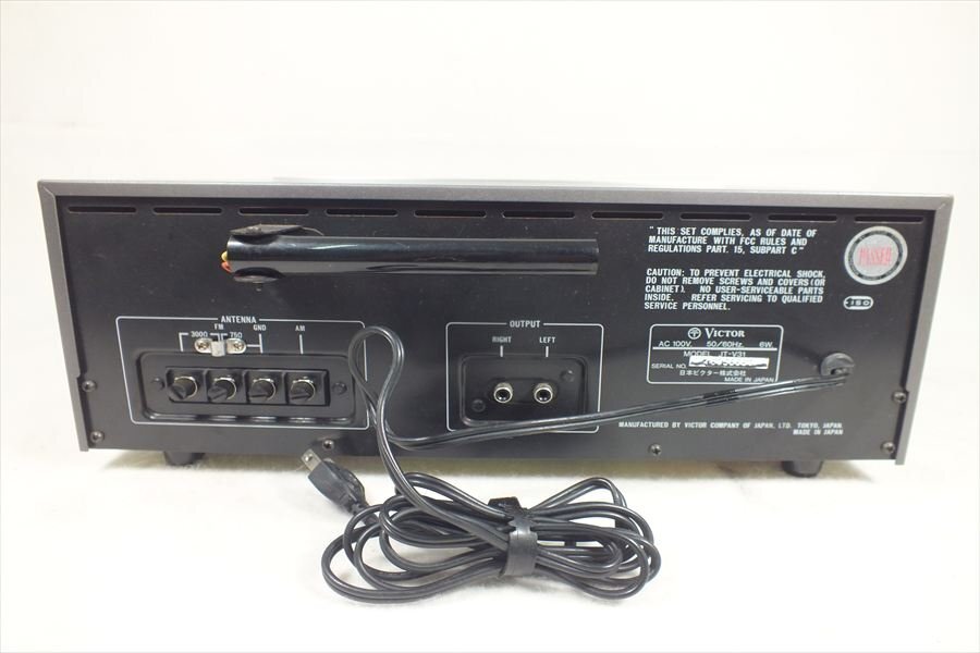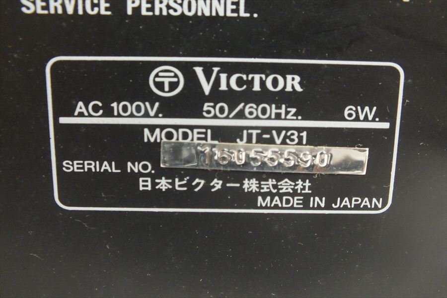 | ◆商品◆ メーカー---------Victor ビクター 型式-------------JT-V31 付属品-----------画像に写っているものがすべてになります。 ◆外装ランク◆ 【 C 】 ◆状態◆ 中古品の為キズや汚れなどの使用感はご容赦ください。 1 L側から音が出ないことあり。 チューナー受信可能。 現状品での出品となります。 【重要】配送送料と送料に送料が0円と表示される場合がございますが、出品画面に記載の送料が落札後にご精算されます。 | |||||||||||||||||