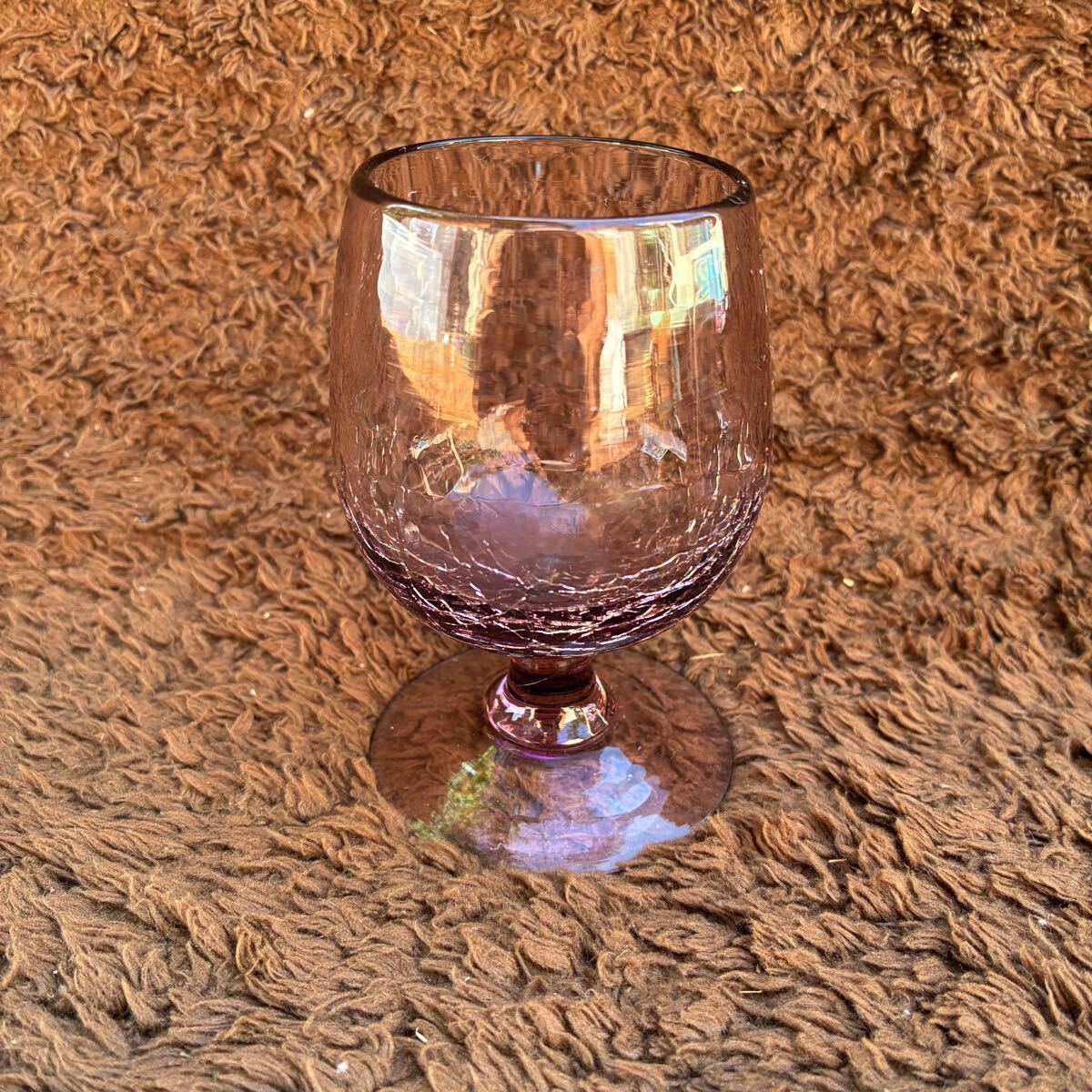 アイスラック クラック加工されたミニワイングラス 詳細は不明ですが、琉球ガラスかと思います。細かなヒビが施されいます。使用に伴う大きな傷やヒビ割れなどは有りません。古い物の為小さな傷や汚れあります。画像を良く見て判断頂き、説明内容をご理解の上で入札してください。3Nでお願い致します。お手数ですが、プロフィールのチェックもお願い致します。