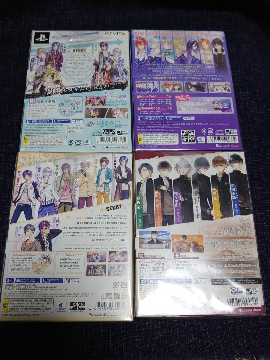 | オトメイト(アイディアファクトリー)発売「PSVitaゲームソフト限定版8本+予約特典ドラマCD8枚セット」の新品未開封品です。 (画像の物が出品物の全てです。) ・悠久のティアブレイド -Lost Chronicle-限定版+予約特典ドラマCD ・悠久のティアブレイド -Fragments of Memory-限定版+予約特典ドラマCD ・猛獣たちとお姫様限定版+予約特典ドラマCD ・猛獣たちとお姫様 ~in blossom~限定版+予約特典ドラマCD ・KLAP!! ~Kind Love And Punish~限定版+予約特典ドラマCD ・KLAP!! ~Kind Love And Punish~ Fun Party限定版+予約特典ドラマCD ・数乱digit限定版+予約特典ドラマCD ・PsychicEmotion6(サイキックエモーションムー)限定版+予約特典ドラマCD 全て未開封ですが、経年劣化によるテープの変色、外装のビニールにスレ、汚れ等があります。 その他、当方が見落とした傷み(ケース割れ、外箱の凹み等)がある場合もございます。 状態は画像でご確認下さい。1度人手に渡ったものとしてお考え下さい。 完全美品をお求めの方、状態に神経質な方は入札をお控え下さい。 | |||
