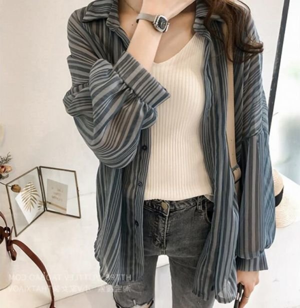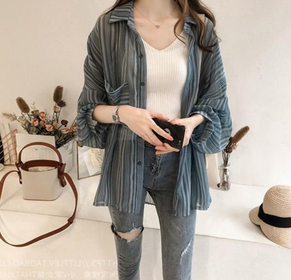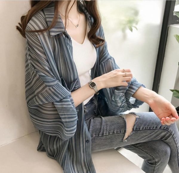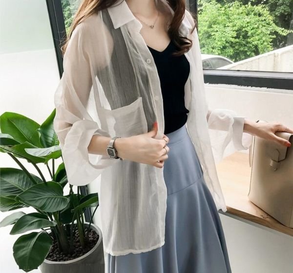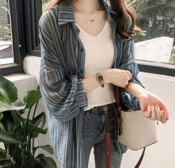 ロングシャツ ブラウス トップス 春 夏 UVカット シフォン 薄手アウター ドルマン 大きいサイズ★ブルー/Mサイズ [浏览原始页面]