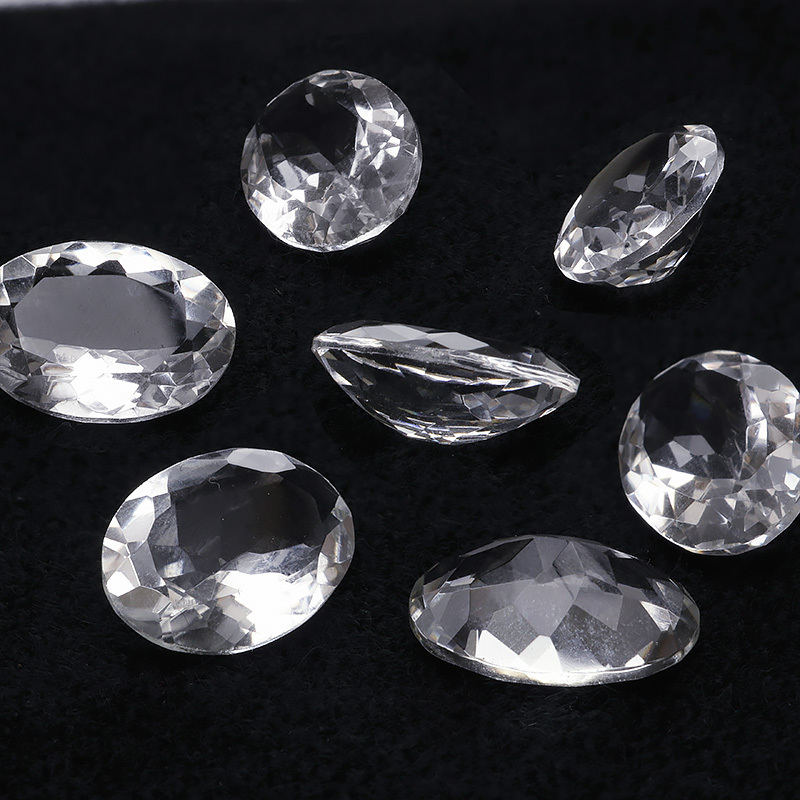 天然水晶にオーバル型のファセットカットを施したにルースです。