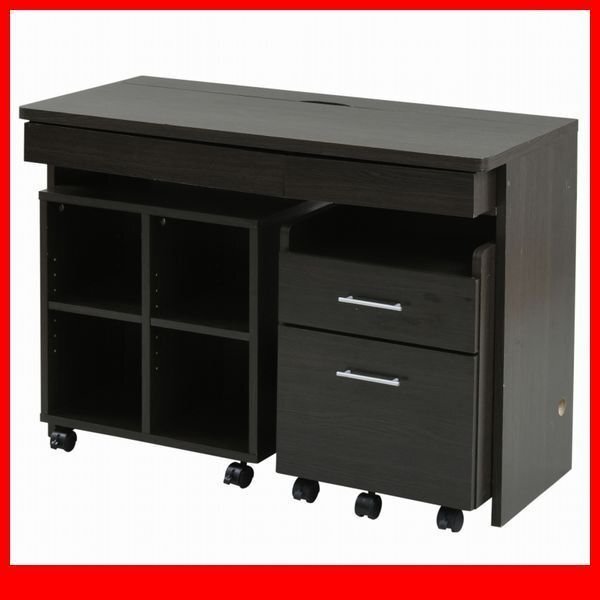 | シンプルなデスクにチェストとラックが付いた3点セットアイテム。 デスクの足元には配線が収納できるスペースがあり、パソコンなどの充電コードが邪魔になりません。 幅100cm、奥行45cmのコンパクトなデザインは、 書斎でもリビングでも置き場所に困らずご使用いただけます。 |