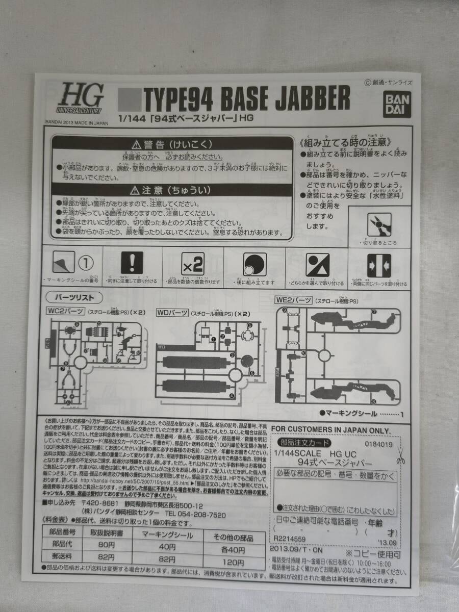 【丸-2481】(KB) 内袋未開封品 BANDAI バンダイ 機動戦士ガンダムUC HG 94式ベースジャバー 1/144スケール プラモデル/(S) |