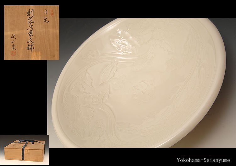 ☆星夢☆8 快山窯 白瓷 刻花唐花文鉢 共箱 茶道具 検 : 塚本快示 [浏览原始页面]