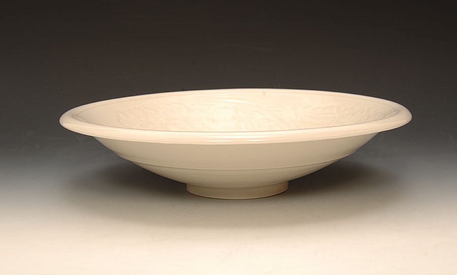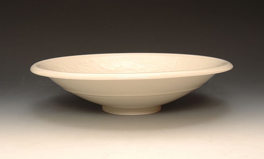 ☆星夢☆8 快山窯 白瓷 刻花唐花文鉢 共箱 茶道具 検 : 塚本快示