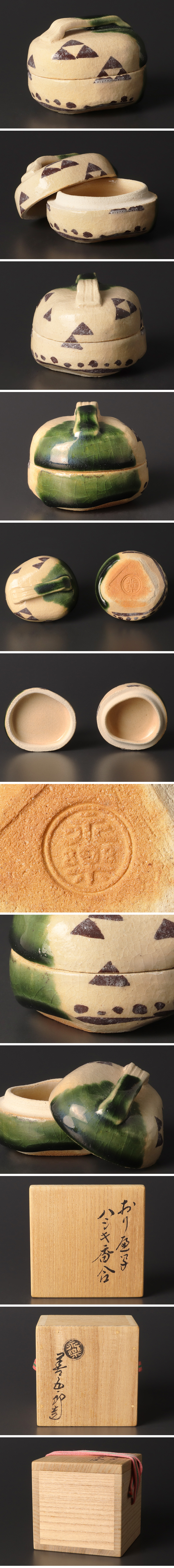 | 【古美味】十六代永楽善五郎(即全)造 織部写 ハシキ香合 茶道具 保証品 |