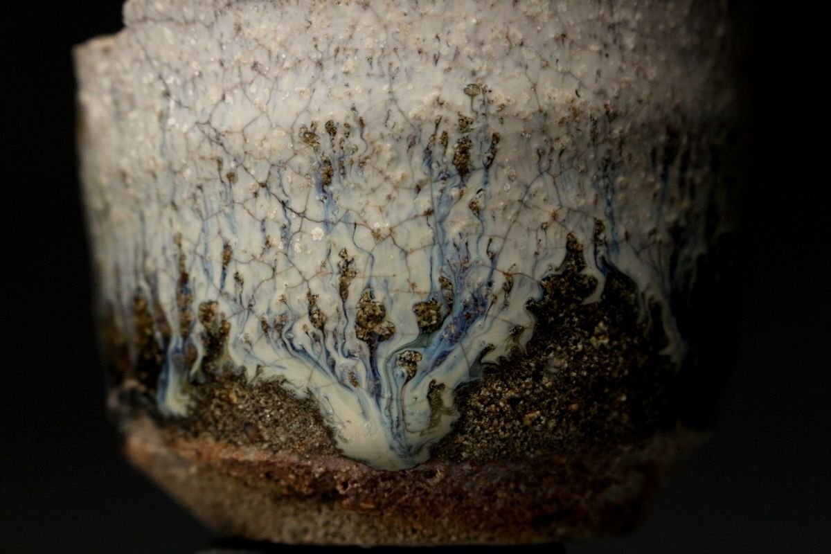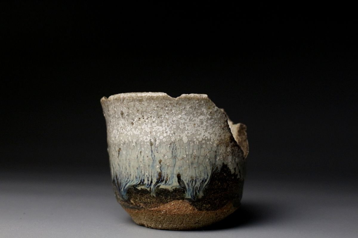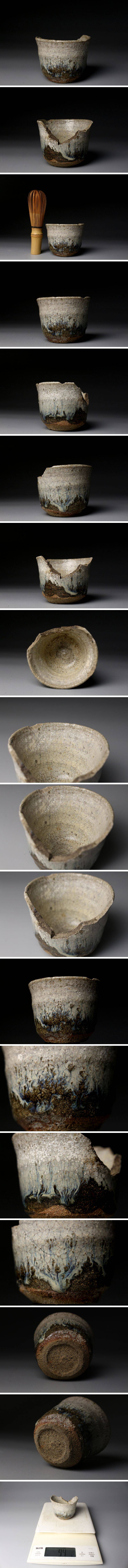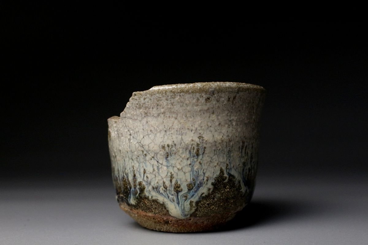 25102304①[.-WI]25.10 25102304T| * * * 商品詳細 * * * ここでしか出逢うことのできない唯一の美をご紹介させて頂きます。 桃山の自由で力強い作風をそのままに伝える、朝鮮唐津の筒盃陶片です。 素朴な土味と、黒釉と白釉が溶け合う景色が見事に残り、わずかに欠けを持ちながらも、往時の美をしっかりと感じさせる一点。 土の中から掘り出されたような風合いには、400年以上の歳月が刻まれ、桃山陶の野趣と静謐さが同居しています。 金継ぎによって修復すれば、今なお盃として十分に使用可能であり、「不完全の美」を体現する器として新たな命を吹き込むことができます。 ■サイズ/横6.5㎝×高5㎝×奥行6㎝ 重量:94g ■状態/ 経年によるスレ、傷、汚れ、欠けがございます。 ※写真にてご確認、ご了承の上ご入札下さい。