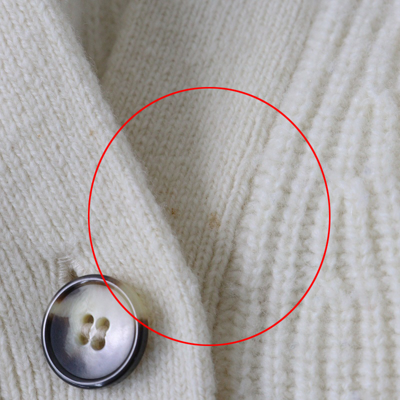 全体的に毛羽立ち、フロント中央部分・袖部分に小さな汚れがございます。