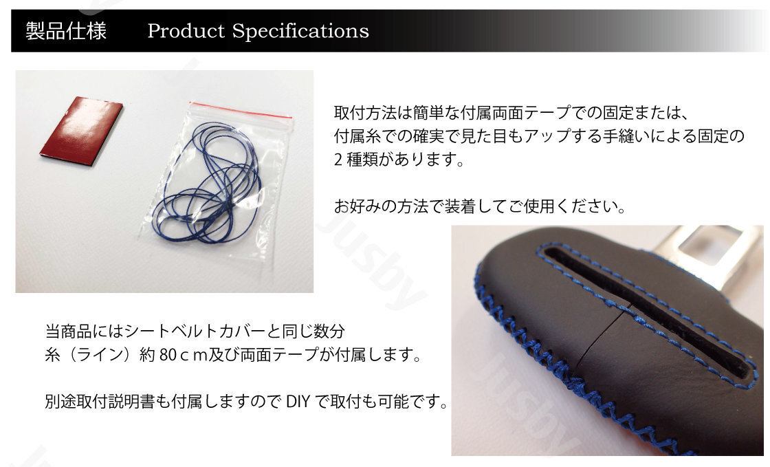 | ・車種専用本皮シートベルトカバー 2個 ・両面テープ 2個 ・糸(約80cm) 2本 ・説明書 |