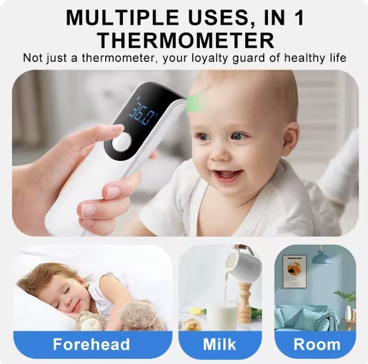 額と手首と首筋の測定用に設計されたこの温度計は