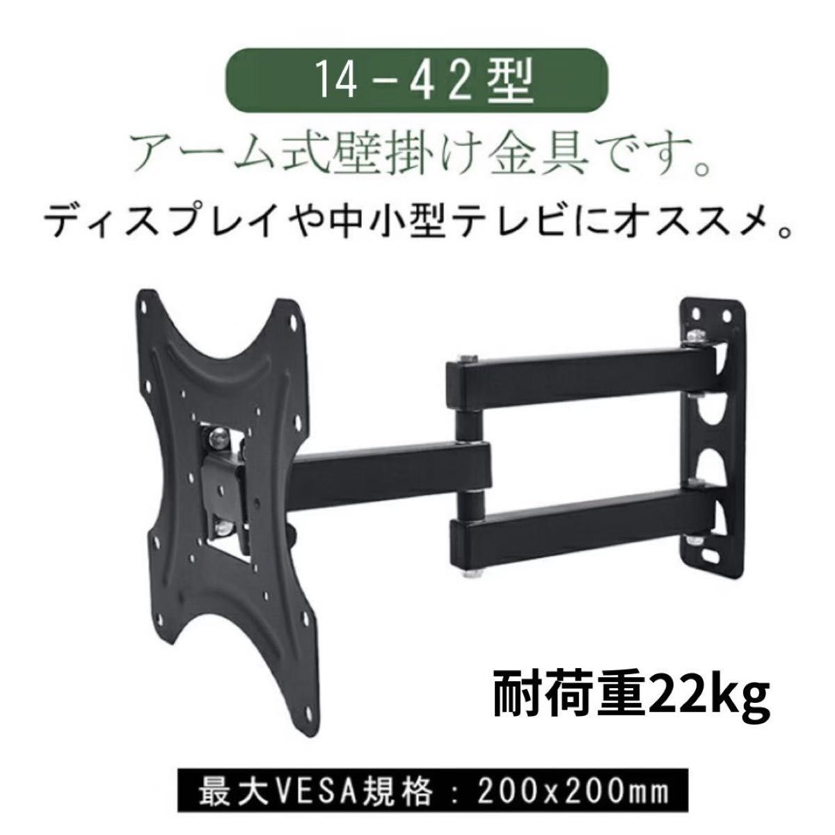 14~42インチの液晶テレビやモニターを壁に取り付けることができるアーム式のTV壁掛け金具です。この金具を使えば、テレビ台が不要になり、お部屋をスッキリとスタイリッシュに演出できます。耐荷重22kgで、幅広いサイズとメーカーのテレビに対応。上下左右、さらに前後への角度調整が可能なので、お部屋のどこからでも最適な視聴環境を整えられます。| 出价者 | 信用 | 价格 | 时间 |