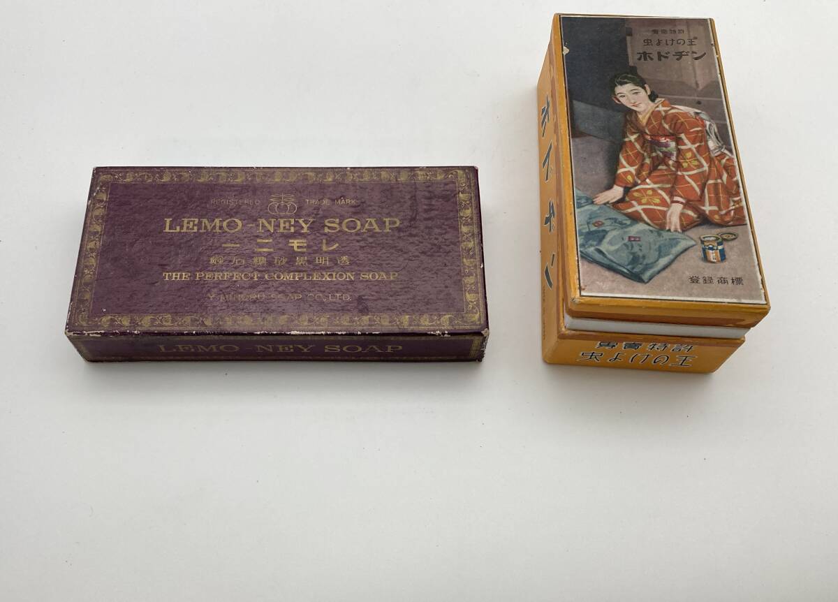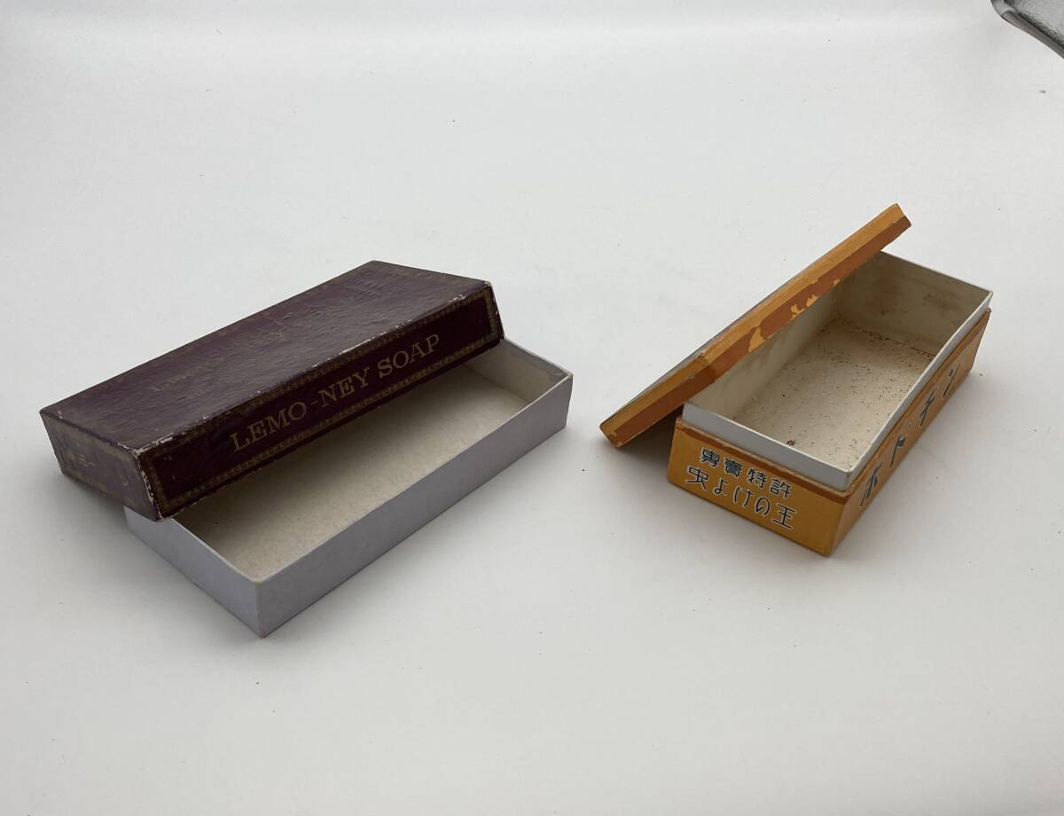 | 昭和レトロ 空箱 2点 / レモニー石鹸の空箱 、虫よけ王 ホドヂンの空箱 | |