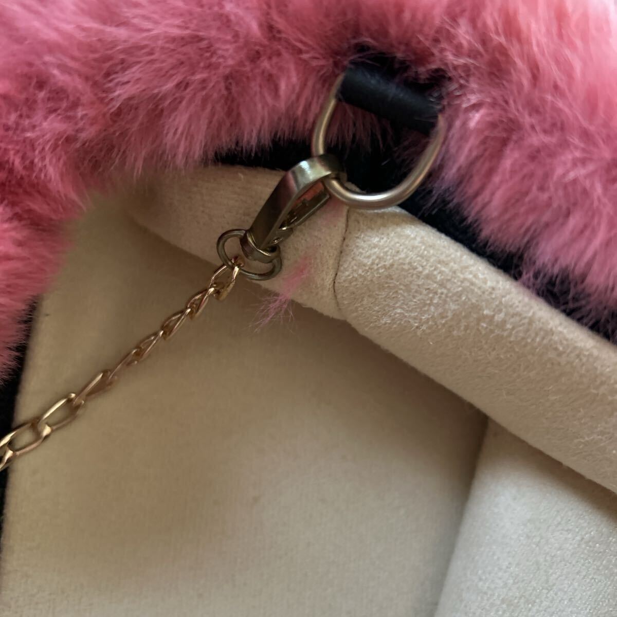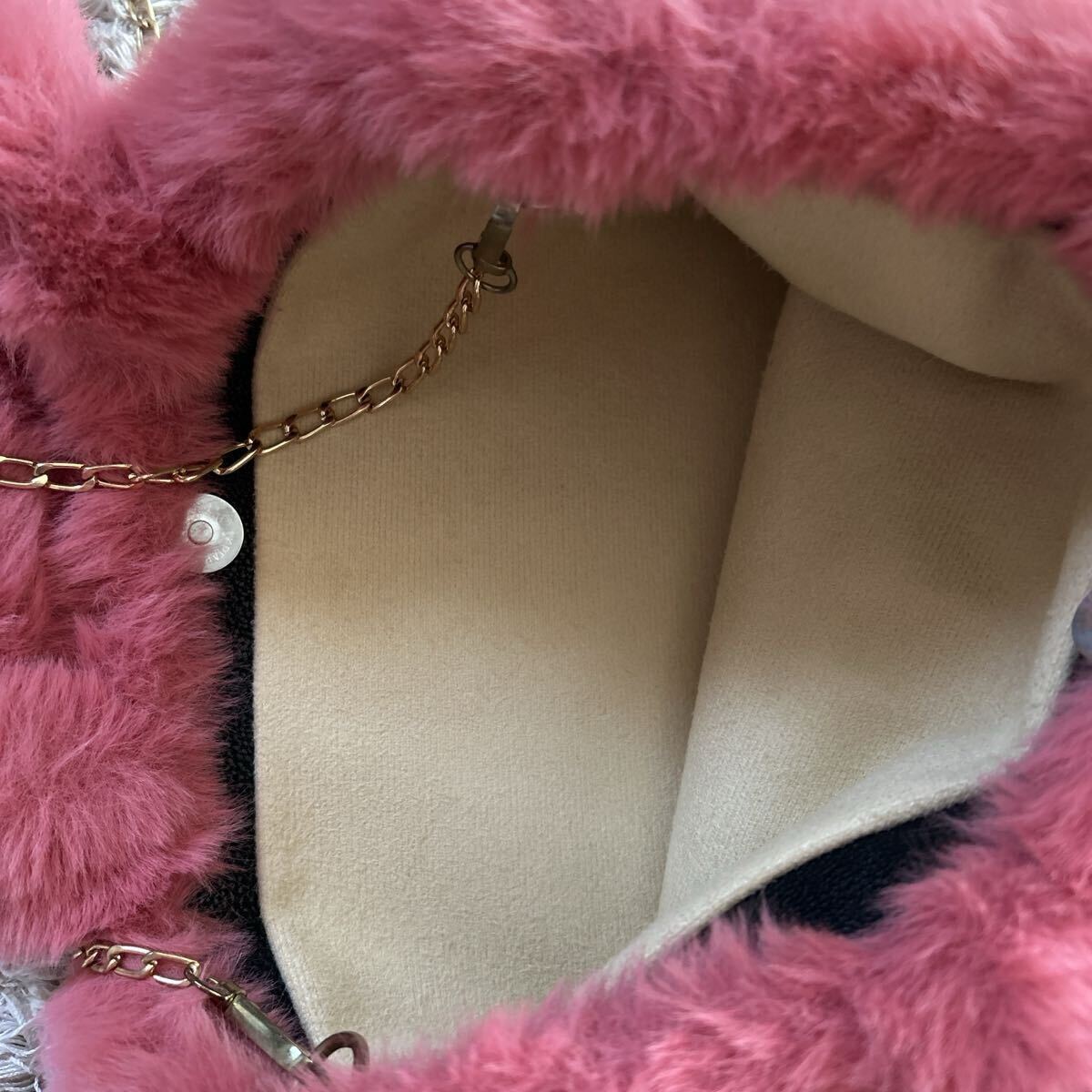 ファー素材のピンクトートバッグ、ロゴデザインとゴールドチェーン付き。| 出价者 | 信用 | 价格 | 时间 |