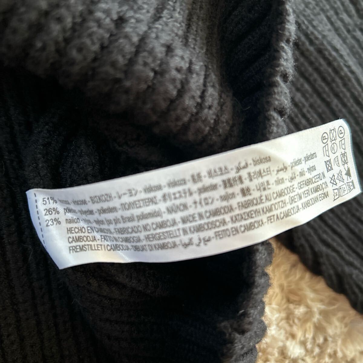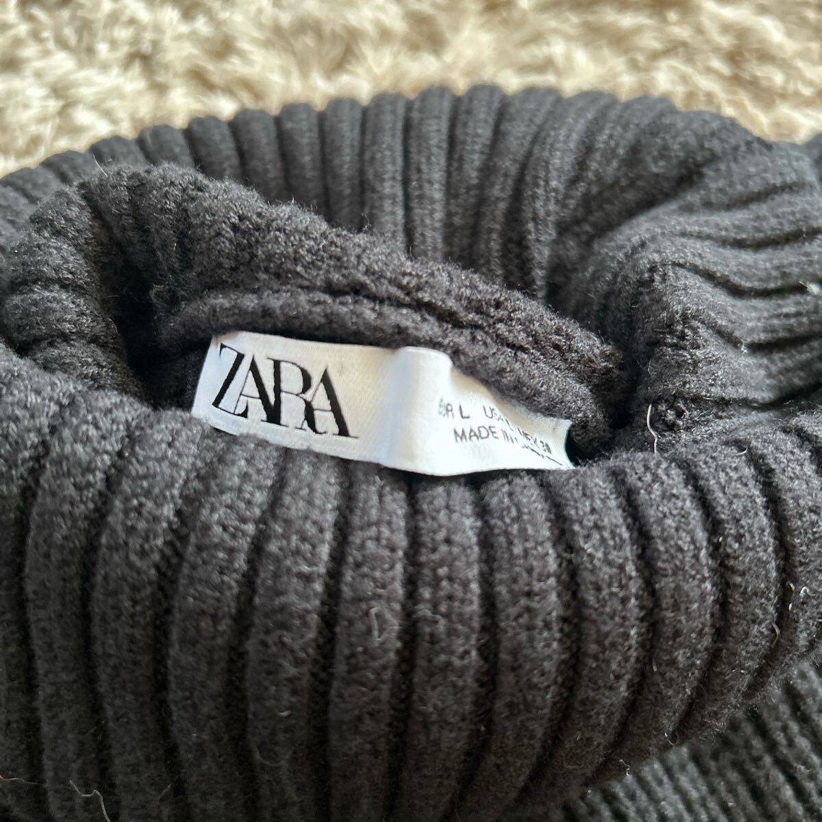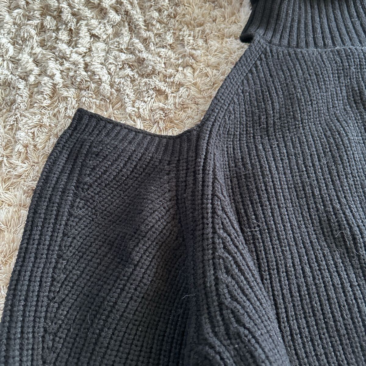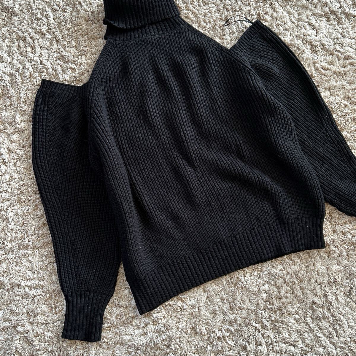 リブ編みのブラックタートルネック、オフショルダーで肩が出たデザインが特徴。| 出价者 | 信用 | 价格 | 时间 |