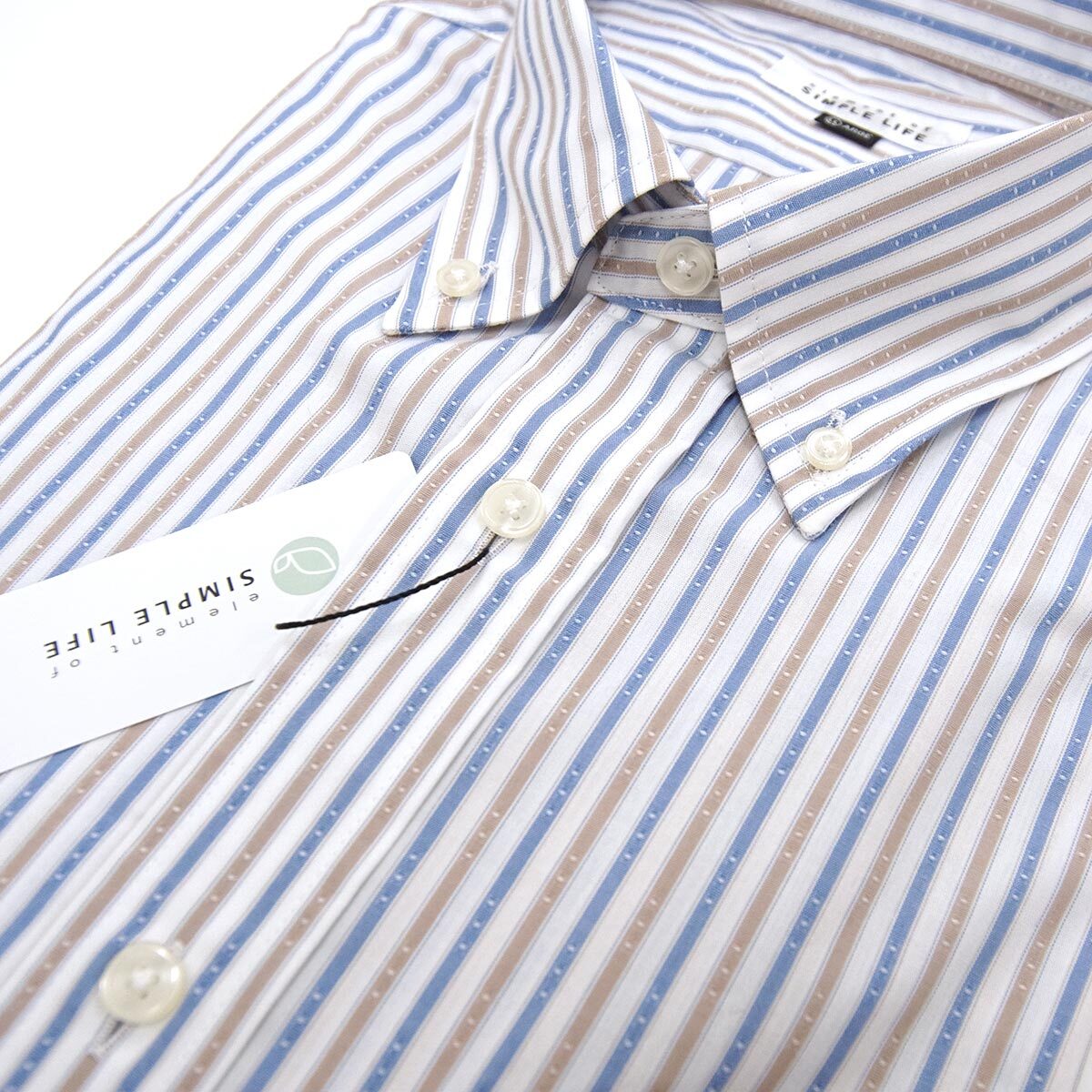 定価は税込9,900円の品。洗練された大人のお洒落を提案する【シンプルライフ】は1975年に【D'URBAN/ダーバン】から派生した歴史あるブランド。爽やかなストライプ柄が魅力の長袖シャツ。エリ先が浮かずノーネクタイでもエリ先が美しく着こなせるボタンダウンカラー。ストライプにドットを散りばめた、繊細な織り柄で高級感が漂います。シンプルかつベーシックなデザインでビジネスカジュアルにもおすすめ。オンオフ兼用でコーディネイトに迷わずシャツ一枚だけでもお洒落が楽しめます。マシンウォッシャブル ご家庭の洗濯機で洗えます。ラインは「エレメントオブ・シンプルライフ/element of SIMPLE LIFE」。どうぞお見逃し無く。