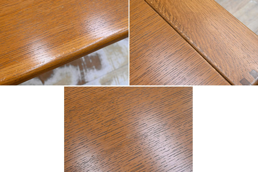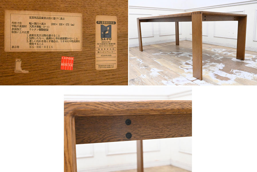 ----------------------------------------------------------------------------------------- ●送料や注意事項は必ずご確認下さい。落札後にトラブルになるケースが増えております。● ◆コンディションは写真・文章にて記載して有りますが、全てのキズの写真は掲載致しておりません。大きなダメージを除き見落とし、記載漏れが有る事はご了承下さい。 ◆当サイトにて出品する商品は多種多彩で、当方商品知識の無い物も多数ありますので落札後の質問やメンテナンス等にはお答えできません。 ◆入札された時点で、画像、文章をご理解していただいたものと判断させていただきます。不明な点は前もってQ&Aからお願い致します。入札後の質問やお電話等でのキャンセルは一切受け付け致しません。 ◆商品説明に「ノークレーム」と記載しているものに関しては、如何なる状況で届いても保証致しません。詳しくは注意事項の「商品到着後について」の最後に記載しておりますのでご確認下さい。 ---------------------------------------------------------------------------------------- 北海道を代表する洋家具メーカー、カンディハウスのダイニングテーブルUSED1点の出品です。 ※写真のチェアは単品にて出品しました。売れている場合も有りますのでご了承ください。 良質な家具を多数生み出している旭川家具産地において、カンディハウスは国内有数の高級家具メーカーとして不動の地位を築いています。 今回ご紹介するお品は北海道の良質なナラ材に上質な本革を使用した贅沢なお品です。 ボルスシリーズはカンディハウスの中でも圧倒的人気があり、今でも中古市場で高価に取引されています。 ヴィンテージの様相、使うほどに質感や風合いが増してきそうなお品ですので末永くお使いいただけるでしょう。 サイズ 幅180x93 高67cm 【コンディション】 天板線キズ、ダコン等有りますが、全体的なイメージは良好です。 | ||