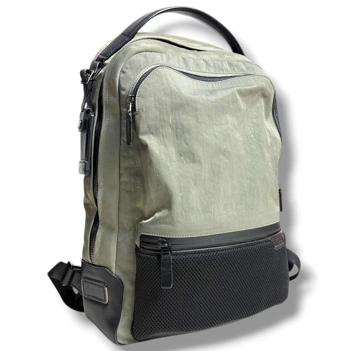 【W28/H40/D8.5】美品 Aランク トゥミ ハリソン HARRISON ブラッドナー ビジネスバッグパック カーキ 6602011TTM TUMI上質なナイロン素材と洗練されたデザインが魅力の、TUMI(トゥミ)「HARRISON」コレクションのビジネスバッグパック。スリムなフォルムながら収納力が高く、機能性とスタイリッシュさを兼ね備えたモデルです。PC収納スペースを備えており、大きめのテンキー付きノートPCも収納可能。ビジネスシーンから出張まで幅広く活躍します。ランク:美品(Aランク)カラー:カーキ素材:画像参照購入先:沖縄 Tギャラリア(免税店)定価:107,800円(税込)状態:使用回数少なく、全体的に非常に良好な状態です。【仕様】・PC収納スペースあり・フロントポケット×2・内部オーガナイザーポケット・上部ハンドル/ショルダーストラップ調整可能・軽量ナイロン素材【ポイント】・シンプルで上品なデザインのTUMI定番モデル・スリムながら収納性抜群・ノートPCや書類をスマートに収納可能・ビジネス・カジュアルどちらにも対応