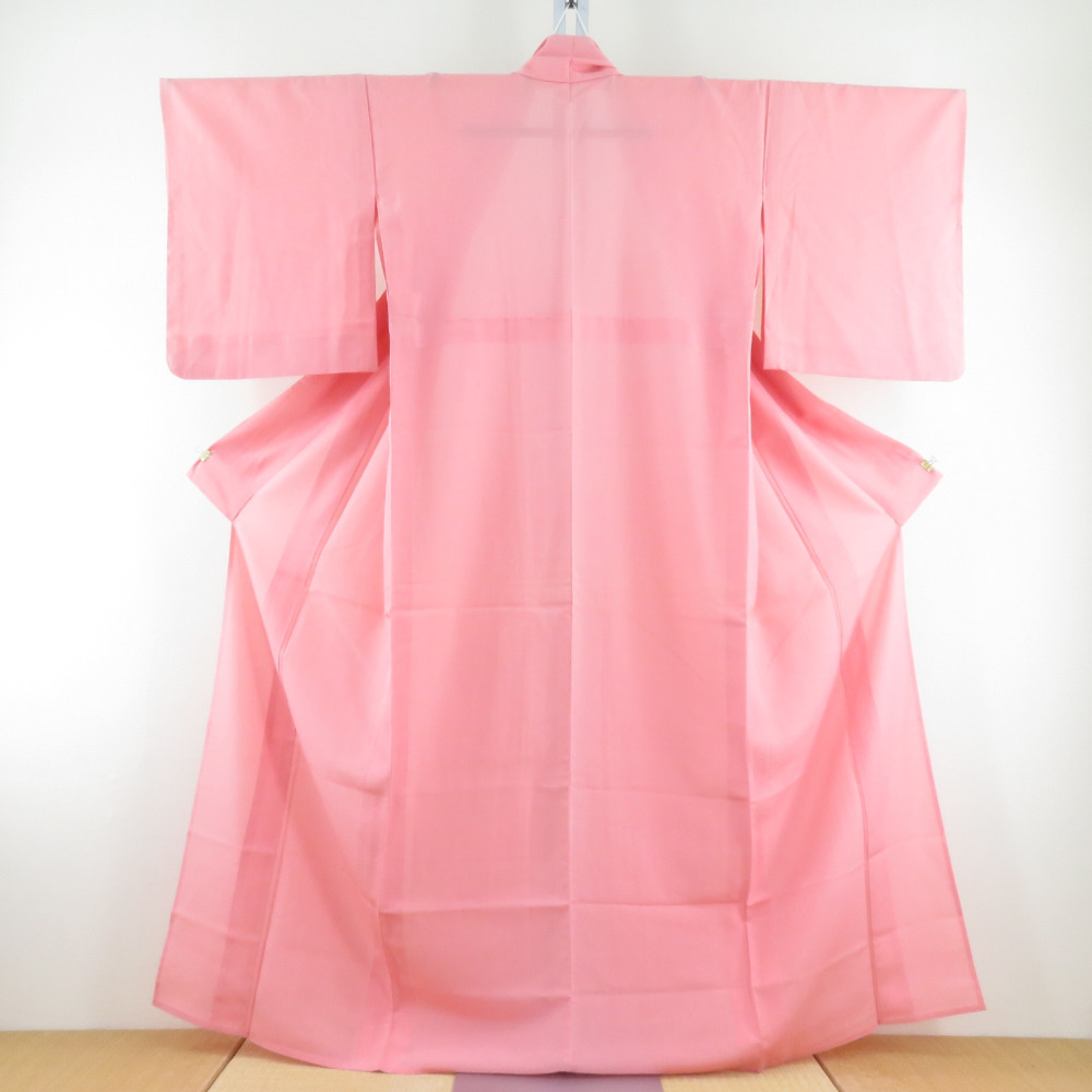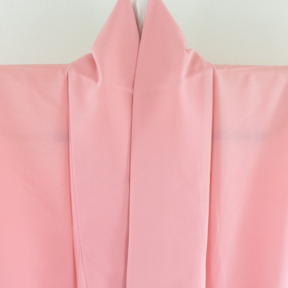 | 夏着物 色無地 斜め格子絽地 広衿 正絹 桃色 紋なし 夏用 仕立て上がり 身丈160cm |