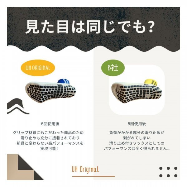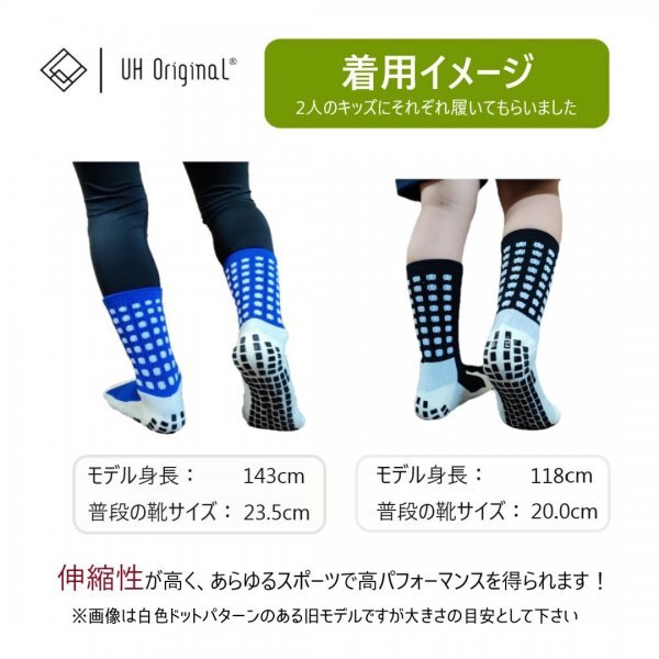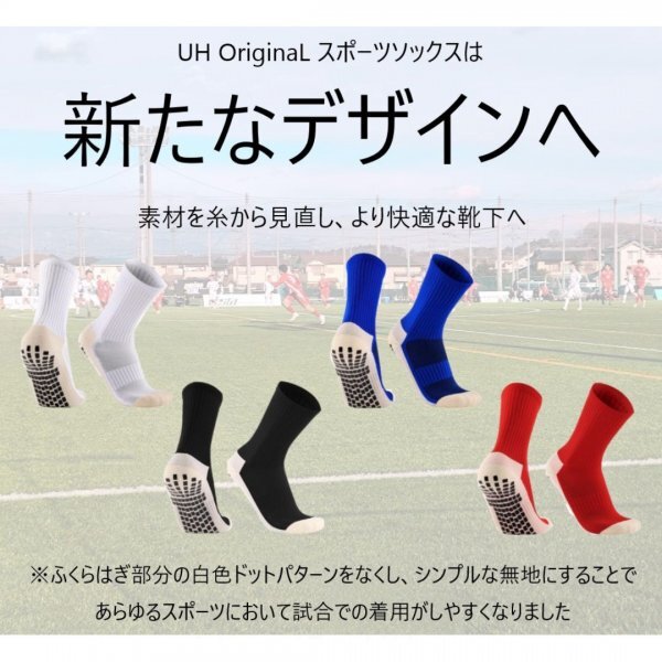| 「UH OriginaL」の滑り止め付きスポーツソックスは新たなデザインへ。素材を糸から見直し、より快適な靴下に。 ふくらはぎ部分の白色ドットパターンをなくし、シンプルな無地にすることで、あらゆるスポーツにおいて試合での着用がしやすくなりました。 全世界のプロ選手御用達の滑り止めグリップ付きスポーツソックスにキッズ・ジュニア用サイズが登場!足育を考えた滑り止め付き靴下は丈夫で穴が開きにくく、普段履きにも使えます。 【サイズ】 19-23cm キッズ・ジュニアサイズ 綿の柔らかさにストレッチ素材が合わさり、履きやすさと履き心地いいフィット感を演出。外側の滑り止めが靴にピッタリと密着することで、靴の中のズレを無くし、捻挫などのケガを防ぎます。 ●厚手の作りですが、足の甲はオリジナルなメッシュ設計を取り入れることで通気性を高め、汗を逃がすことで脚の蒸れを防ぎます。 ●履き口は高い弾性のある素材を使うことでズレを防ぎ、高パフォーマンスを得られます。 ●足裏にある大量の滑り止めが摩擦力を高め、スポーツや運動中の切り返しや急加速にも効果を発揮。 サッカー、フットボール、ラグビー、陸上、テニス、バスケットボール、バドミントン、バレーボール、卓球、ソフトボール、野球、ジョギング、ランニング、トレーニング、スキー、スノーボード、ダンス、ヨガ、フィットネス、登山など、あらゆるスポーツに対応した靴下が子供の脚を守ります。 TRUSOX トゥルーソックスではありません。 足育を考えた滑り止め付き靴下(ノンスリップソックス)は普段履きにも使えます。 家の中でのフローリング生活によく見られる転倒を防止し、通学などの学校生活においても滑り止めパッドが靴の中のズレをなくす事で足首捻挫などのケガを防ぎます。 | ||