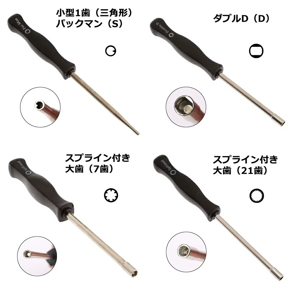 (小型1歯(三角形)パックマン(S)+ダブルD(D)+スプライン付き大歯(7歯)+スプライン付き大歯(21歯))をお届けします。
