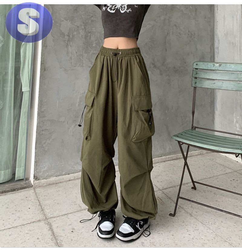 カーゴパンツ カーキ レディース S ワイド ストリート ダンス アウトドア ウエストゴム