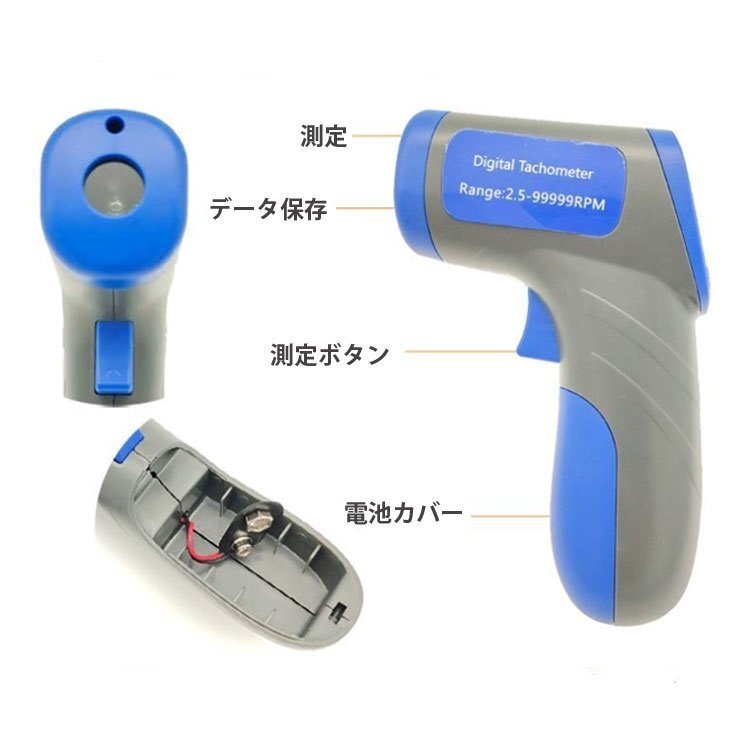◆非接触式デジタル回転計 タコメーター LCD液晶 バックライト 2.5-99999RPM 最大値 最小値 平均値 60組数値保存可能 9V角型乾電池使用 省エネ自動電源OFF搭載 TMDT6685